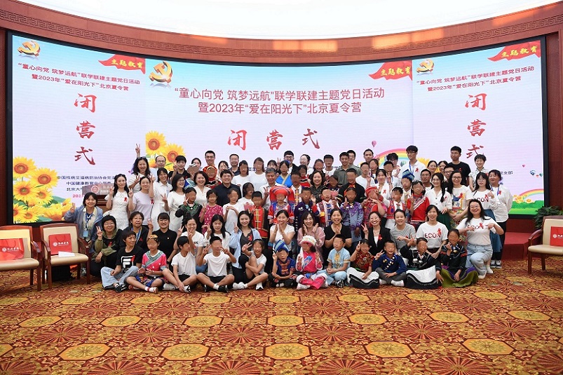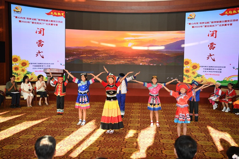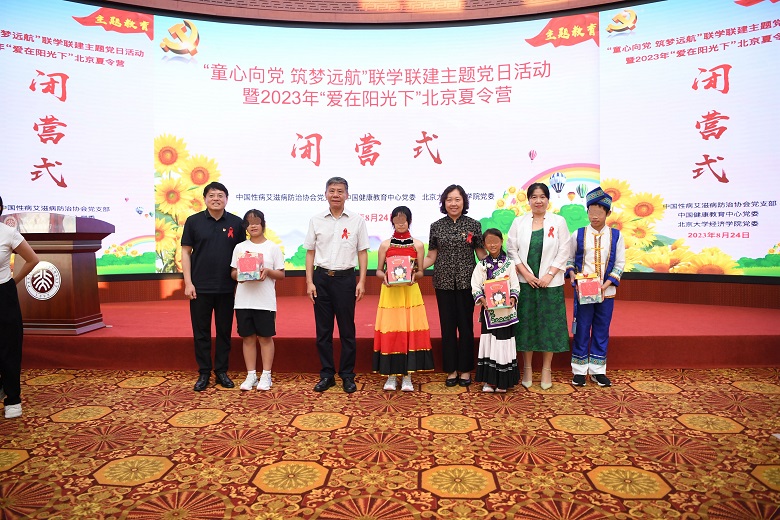 为深入学习贯彻习近平新时代中国特色社会主义思想主题教育和党的二十大精神,8月24日下午,中国健康教育中心党委、中国性病艾滋病防治协会党支部和北京大学经济学院党委联合开展了“童心向党,筑梦远航”联学联建主题党日活动暨2023年“爱在阳光下”北京夏令营闭营式。中国健康教育中心副主任李英华,中国性病艾滋病防治协会党支部书记、会长郝阳,党支部副书记、副会长兼秘书长王新伦,北京大学党委常委、副校长、经济学院院长董志勇以及相关单位的党员代表和参加2023年“爱在阳光下”夏令营的营员、老师共同参加了此次活动。